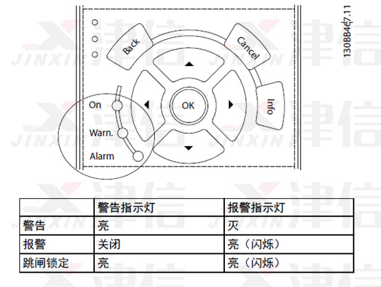當(dāng)?shù)し鹚棺冾l器出現(xiàn)故障時(shí),警告和報(bào)警通過以下兩種方式顯示: