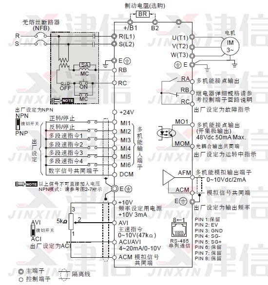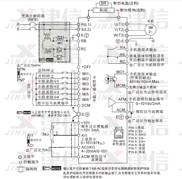 DELTA臺(tái)達(dá)VFD-E變頻器接線圖和接線注意事項(xiàng)