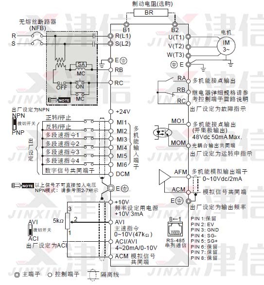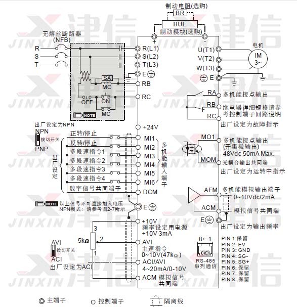 l  控制配線請(qǐng)盡量使用隔離線,端子前的隔離網(wǎng)剝除段請(qǐng)勿露出。