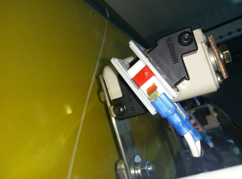 檢查完最左邊模組后并未發(fā)現(xiàn)問題,將剩余模組全部檢查完畢,均正常。通過觀察發(fā)現(xiàn)直流母排上最左端模組連接快熔微動開關(guān)動作。